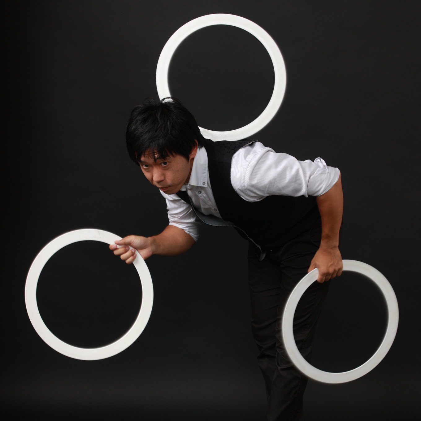 ジャグリング全国大会優勝の経歴を持つパフォーマー。ボールやリングを使った華麗なジャグリング、さらにはオリジナルの道具を使用した世界で唯一の演目など、バラエティ豊かなショータイムをお届けします。