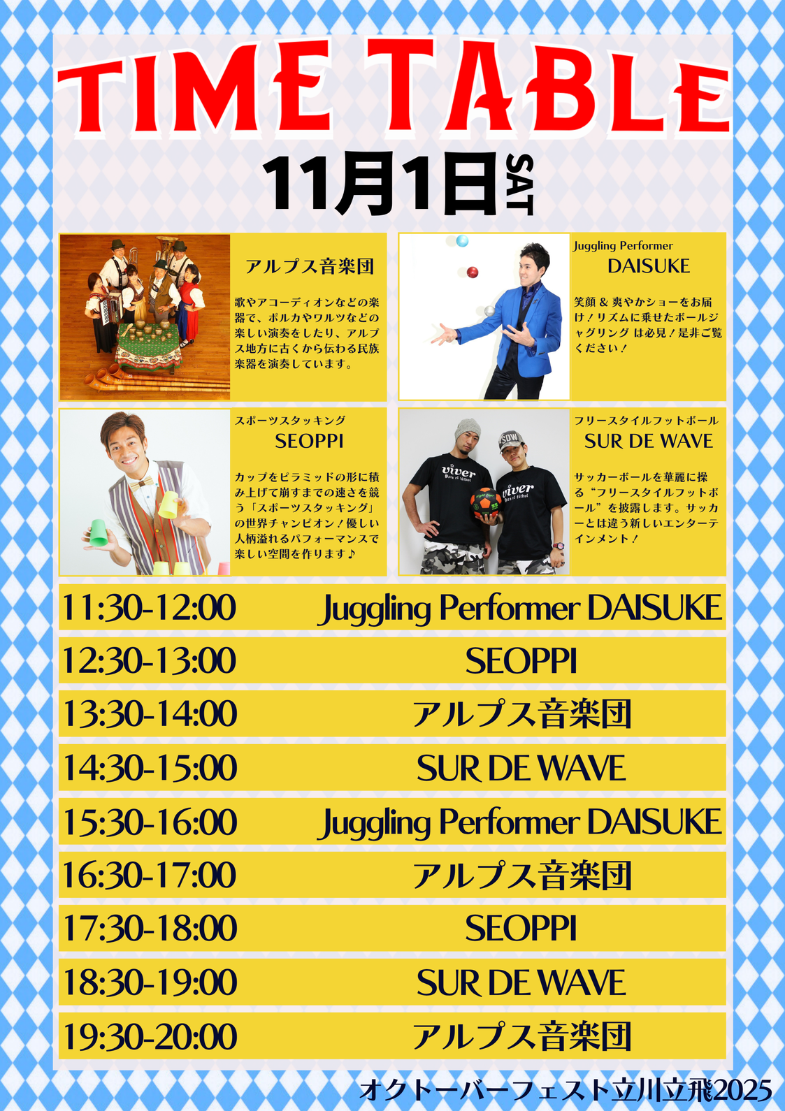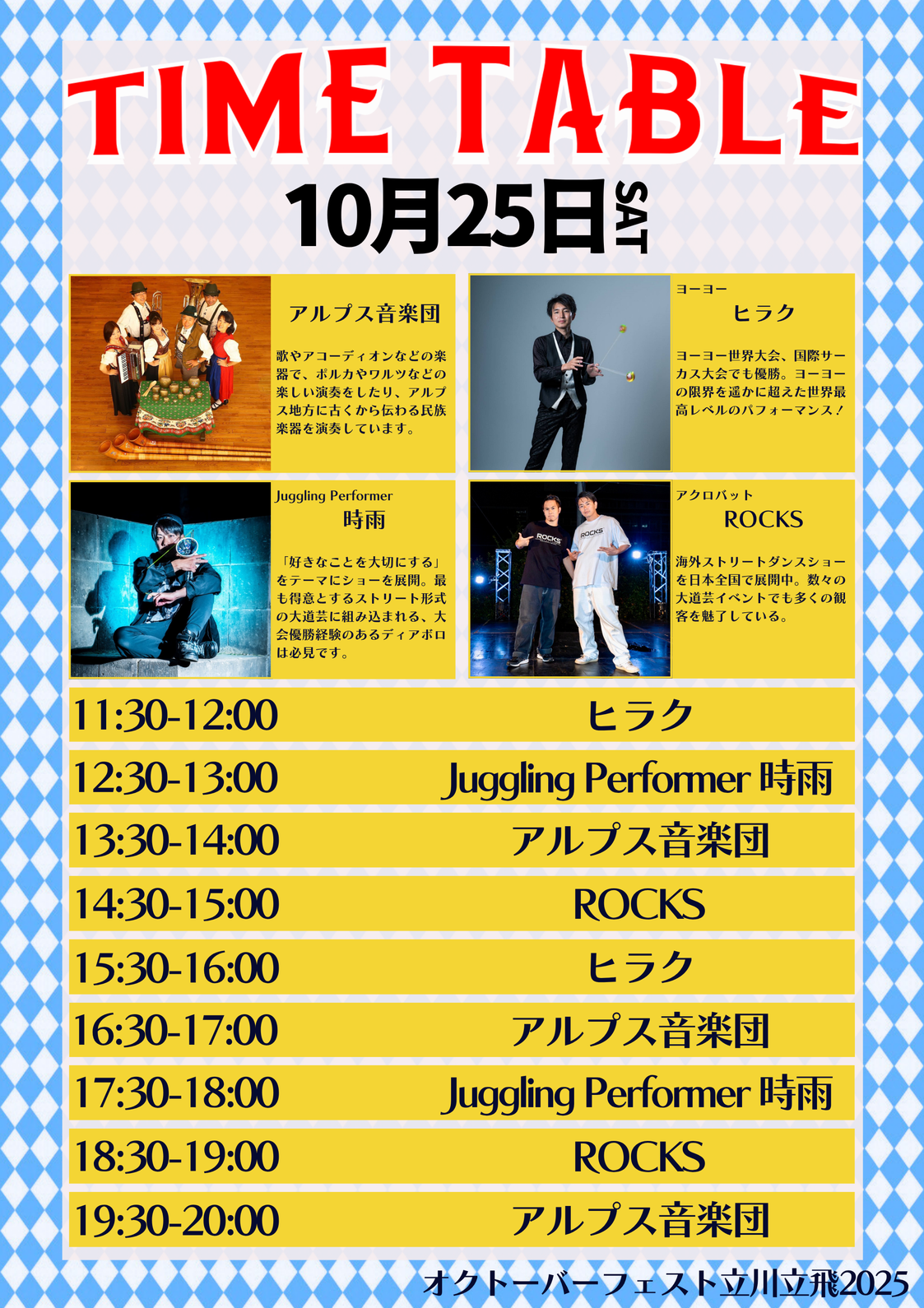 「好きなことを大切にする」をテーマにショーを展開。最も得意とするストリート形式の大道芸に組み込まれる、大会優勝経験のあるディアボロは必見です。北海道産パフォーマンスをとくとご覧あれ!